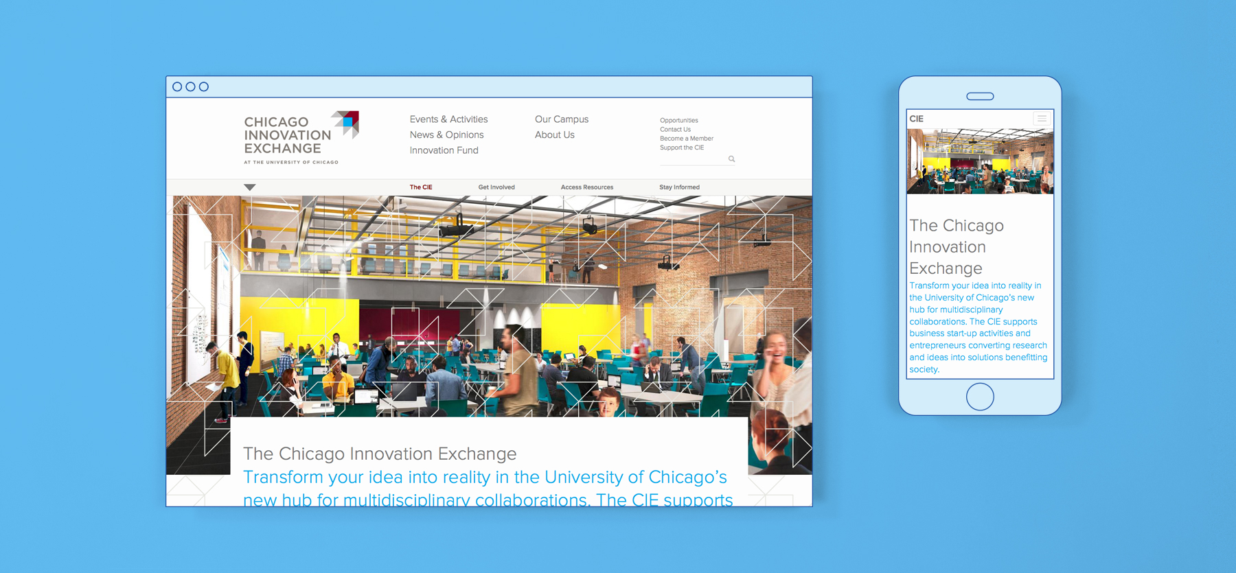 The CIE brand needed to move beyond the familiar, institutional brand of the University to better relate to vibrant start-ups and entrepreneurs. This dual distinction was integral to CIE’s ability to better reach a community of peers and experts looking to connect around innovative ideas. Working with the team at CIE, we explored visual directions that telegraphed CIE's equal commitment to both the tech world and academic research.