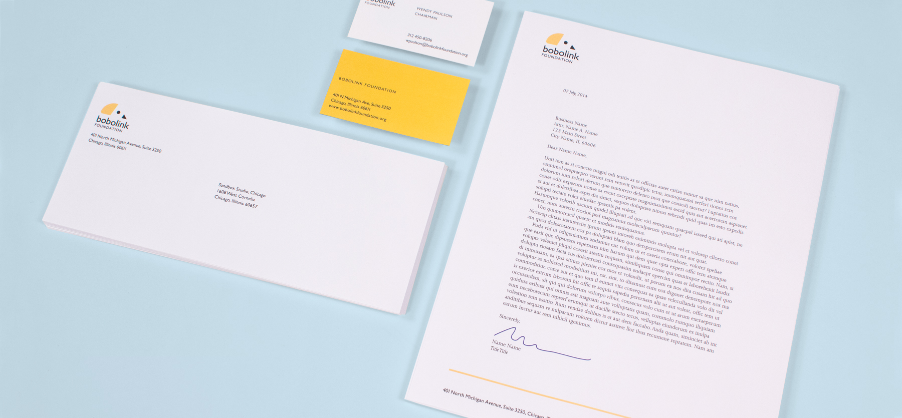 Bobolink’s namesake, a bird, inspired the creation of a successful identity that communicates the foundation’s forward momentum and watchful eye. Sandbox is now developing Bobolink’s website and has recently completed a business system, all of which helps Bobolink establish its visual-self among their global conservation peers and partners.