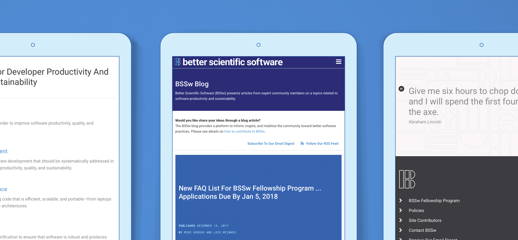 The BSSw site serves the teams of scientists, mathematicians, and software engineers who prepare applications and continue to improve the software operation on supercomputers, allowing them to be used as instruments of scientific discovery. The site offers a central information hub to this decentralized community, allowing them to locate and share best practices, techniques, experiences, and tools.