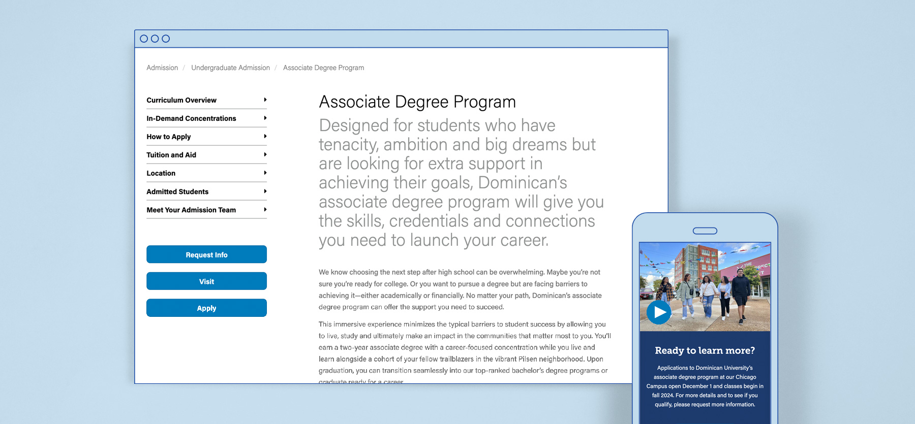 We recently performed a critical and intensive Drupal version update which gave us an opportunity to streamline and content types and bring bolster the site's accessibility compliance. In our initial engagement with Dominican, we performed a complete site redesign and redevelopment project, completed in 2018.