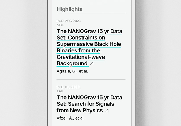 NANOGrav is a scientific collaboration at the forefront of a new era of gravitational wave astronomy. Sandbox worked with the NSF-funded Physics Frontiers Center to establish a platform to convey the excitement and potential of their efforts and findings.