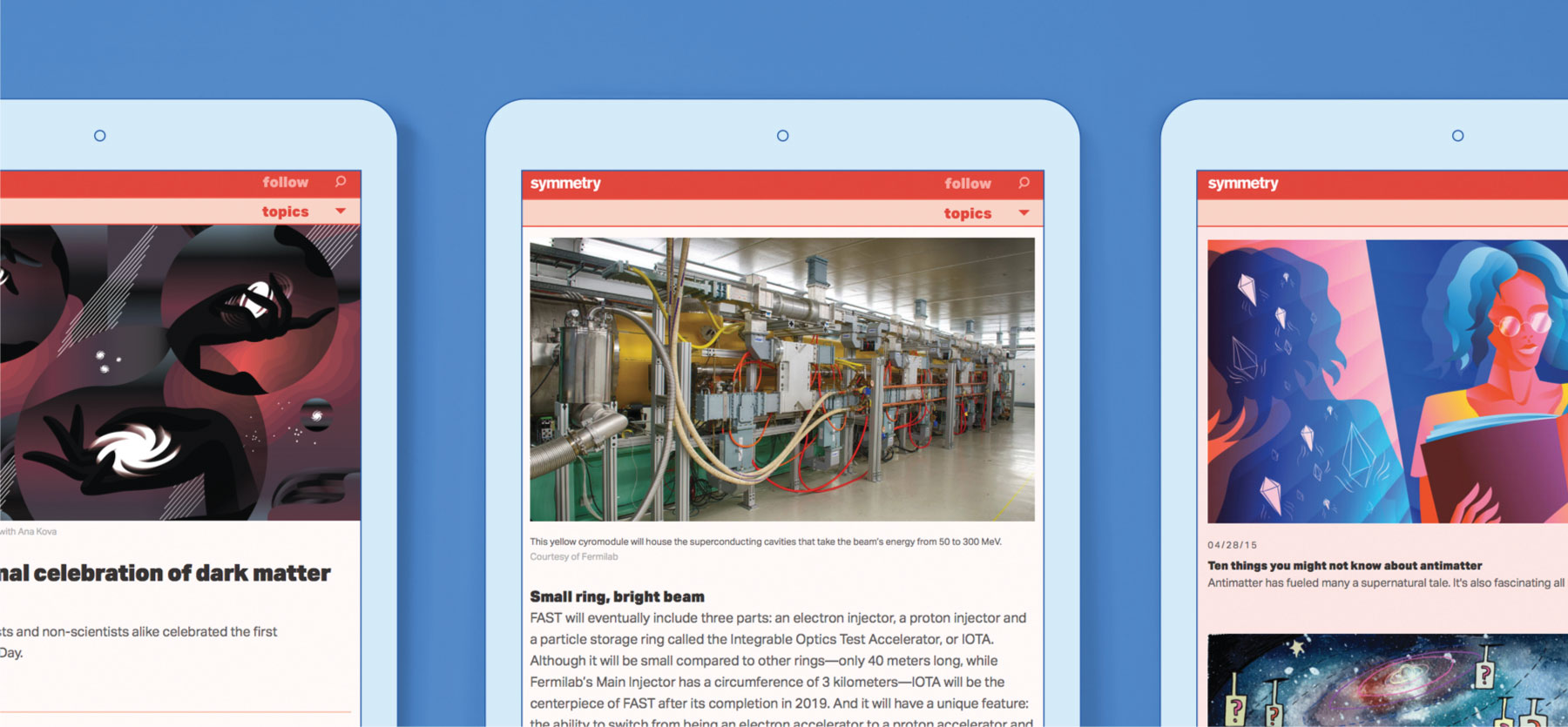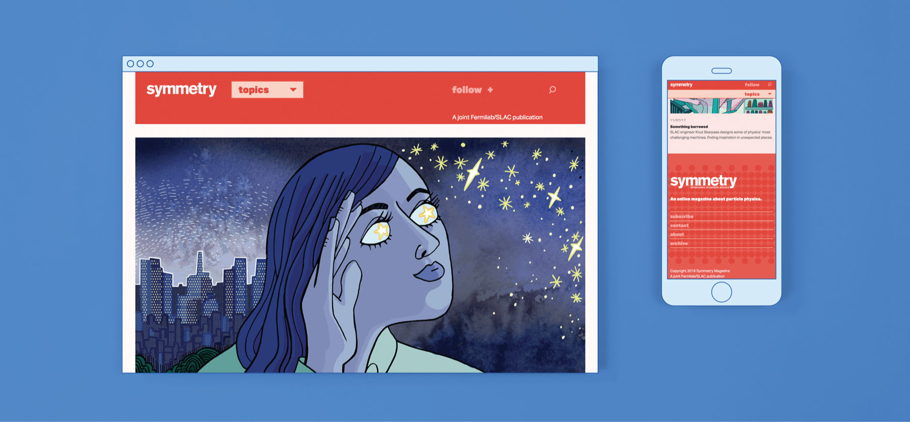 In 2004, Sandbox won the contract to design and produce Symmetry’s inaugural issue in print. After completing 56 print issues, the magazine made a strategic decision to become a digital publication. In 2015, Sandbox collaborated with the editorial team to design and produce an entirely new website with a brand refresh. Now in Symmetry’s twenty-first year of production, this magazine is one of Sandbox’s proudest achievements and Symmetry has become one of the world’s most popular particle physics magazines.